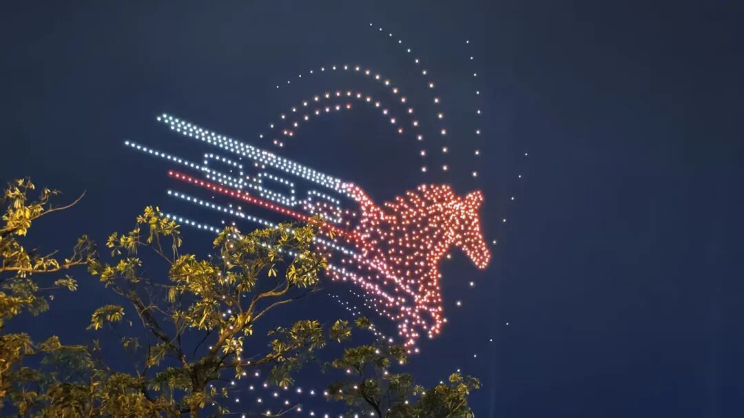 与此同时,2026年平远县“万马迎春 福满平远”春节无人机表演在平远县全域旅游服务中心上空璀璨启幕。整场演出分为“一见倾心·爱上平远”“聚力实干·奋进平远”“乡贤同心·筑梦平远”“万马迎春·福满平远”四大篇章。活动中,无人机编队先后幻化出先贤程旼形象、省级非遗平远船灯,以及红四军纪念馆、五指石、南台卧佛等地标,并呈现脐橙、灵芝等特色物产,展现“醉美橙乡”的人文底蕴与发展成就。当“三产融合 三产齐飞”字样闪耀夜空时,现场掌声雷动。最后篇章中,“策马奔腾”“马年大吉”“马到成功”等马年元素图案登场,巨大的“福”字在夜空中绽放,将新春祝福洒向千家万户。