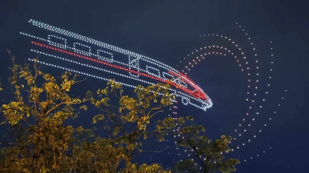 紧接着,1200架无人机组成的编队震撼亮相,上演了一场绝美的空中视觉盛宴:倒计时触碰粉球激起层层涟漪,旋即化作龙卷绕动立体爱心,满溢新春欢喜;随后梅花竞相开放,逐渐演变为“‘梅’好时光 万‘午’呈祥”字样;高铁穿过漩涡之门,骏马奔腾而出;爱心跃动托举“我爱梅州”字样,围龙屋前小船轻渡,“请到梅州过大年”字样随烟花绽放;最后地球旋升,“客”字logo闪耀,流光勾勒专属标识,客家风情与新年盛景交织,邀请大家共赴梅州欢度别样新春……市民们紧盯天空,举起手机抓拍,不时发出惊叹。